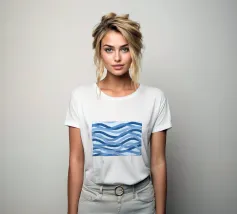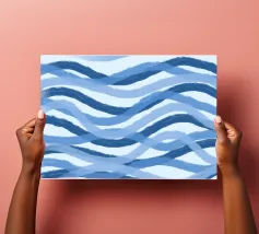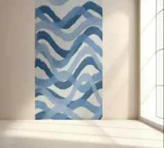 An abstract and calming art print featuring a pattern of undulating waves in various shades of blue. The layered brushstrokes create a sense of movement and depth, reminiscent of the ebb and flow of ocean currents. The soft, textured lines and harmonious color palette make this a serene and modern piece, perfect for adding a tranquil touch to a living room, bedroom, or bathroom. This high-quality digital download (7000x5000 pixels, 300 dpi) ensures every detail and subtle color variation is captured with precision.