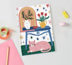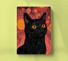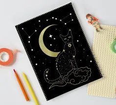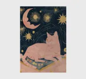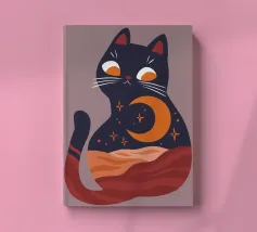 Bohemian Cat Print, Celestial Moon Star Print, Animal Boho