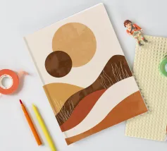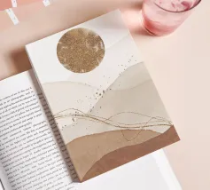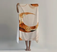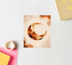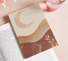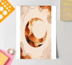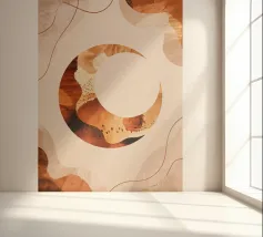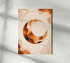 Elegant and mysterious, this design plays with organic shapes and earthy textures around a central crescent moon. The harmony of terracotta, beige and copper tones creates a warm ambience that is both modern and spiritual. Ideal for bohemian, Zen or minimalist interiors, this visual invites contemplation and connection with lunar energies. A strong choice in style and symbolism.