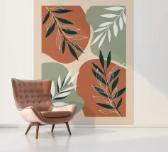 Bring a touch of modern bohemian style to your home with this unique botanical art print. Featuring a captivating mix of abstract shapes in warm terracotta and calming sage green, this minimalist illustration showcases elegant leaves with a mix of solid and line-drawn details. The earthy color palette and organic forms create a serene and stylish atmosphere perfect for your living room, bedroom, office, or gallery wall. This versatile piece complements various decor styles, from mid-century modern to Scandinavian, and adds a peaceful, natural element to any space.