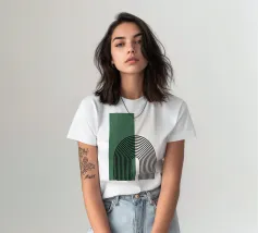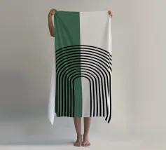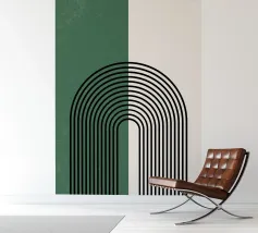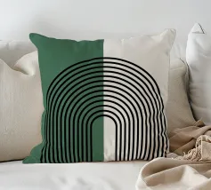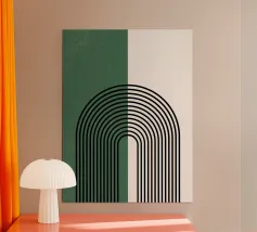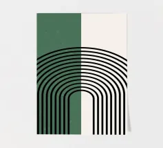 This modern design combines elegant semi-circles of black lines with a split colour scheme in green and cream. The minimalist aesthetic and clean structure make this motif an ideal choice for wall art, mugs, mobile phone cases or cushions. It adds a calm and stylish atmosphere to any room and is perfect for lovers of boho and Scandinavian designs. A timeless work of art that also makes an excellent gift.