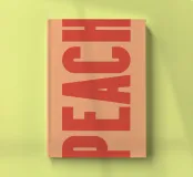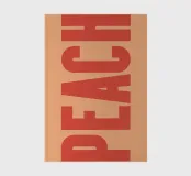 peach color theme, vertical text design, bold graphic art, retro typography, minimalist aesthetic, fruity color palette