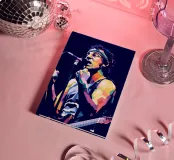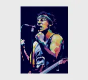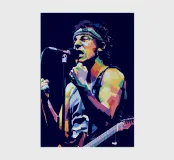 Bruce Springsteen in WPAP style is a vibrant, geometric portrait of The Boss, featuring bold, angular shapes and striking color contrasts. This modern pop-art technique captures his intense energy and legendary presence, reflecting his deep-rooted influence on rock music. The WPAP style enhances his iconic image, emphasizing his passionate performances and storytelling prowess through dynamic, high-contrast hues.