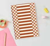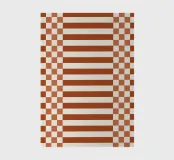 Featuring a stylish blend of geometric checks and clean lines in burnt orange tones, this design brings cozy sophistication and mid-century modern charm to any room or accessory. Perfect for eclectic and contemporary home decor lovers who appreciate timeless style with a vibrant twist.