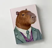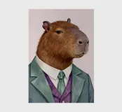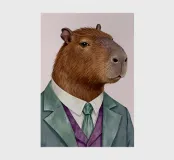 A refined capybara dressed in a classic suit, blending charm and elegance with a gentle touch of humor — perfect for nursery walls or playful spaces.