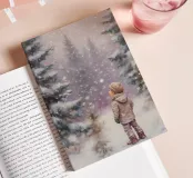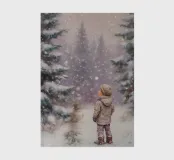 This atmospheric winter painting shows a child gazing in wonder at the softly falling snow in the snow-covered forest. Surrounded by majestic fir trees and gentle snow flurries, the artwork conveys a sense of security, tranquillity and the magic of childhood in winter. Perfect as a wall mural, Christmas decoration or as a gift idea for anyone who loves nostalgic winter and Christmas scenes.