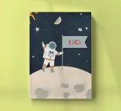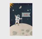 This lovingly illustrated children's poster shows an astronaut on the moon with a customisable flag - the name can be personalised. Perfect for little explorers and space fans! The modern, playful design brings colour and imagination into the nursery. Ideal as a gift for a birth, christening or birthday. Available as a poster, canvas or textile print - a very personalised adventure in space.