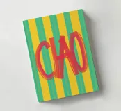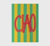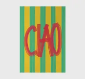 Playful typo poster with Italian flair: the hand-painted "CIAO!" lettering in vibrant red contrasts with the striped background in sunny yellow and turquoise. The mixture of a loose brush look and retro colours makes the design the perfect eye-catcher for kitchens, hallways or creative studios. A cheerful greeting - loud, colourful and charmingly Mediterranean.