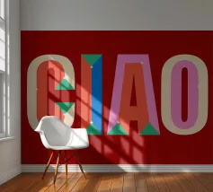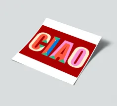 Say 'CIAO!' in style with this Bold Colorful Graphic Art Print. This design features the word 'CIAO' spelled out in large, stylized letters bursting with vibrant colors and geometric accents against a striking red background. The graphic style uses flat shapes and bold typography to create a visually dynamic and cheerful print. Perfect for adding a pop of color, personality, and a touch of international flair to your walls. Produced from a high-resolution 7000x5000 pixel, 300 dpi digital file, this print offers exceptional quality and detail.