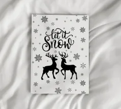 A crisp, modern take on the beloved phrase “Let it Snow.” Clean white lettering and delicate snowflakes float over a frosty blue background, creating a simple yet stylish winter artwork perfect for calm and minimalist spaces.