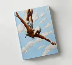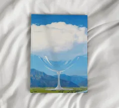 cloud legs woman nature landscape surreal mountains hills blue sky reflection lake river path grass trees horizon barefoot sky imagination dreamlike