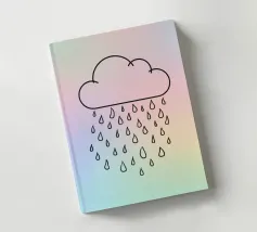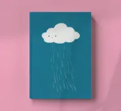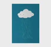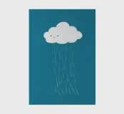 Traurige kleine Wolke mit Regenschauer. Handgemaltes süsses Motiv.