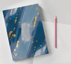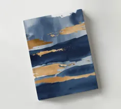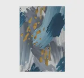 Quick cobalt streaks break with bold golden accents in painterly intensity.