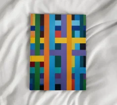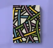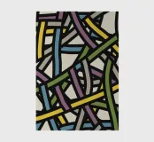 A variety of thick and thin lines crisscross and overlap each other against a light background, creating an intricate pattern. Colored segments in shades of blue, green, yellow, and purple add a vibrant contrast to the black lines.