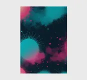 This abstract background showcases a harmonious blend of bright pink and teal circles surrounded by soft cloud-like textures. The design is perfect for modern art projects or desktop wallpaper.