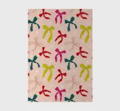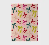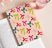 A playful pattern of colorful bows in red, pink, teal, lime green, and peach, scattered across a soft peach background with white star accents. This cheerful and festive design brings a whimsical charm, perfect for adding a feminine, joyful touch to your space. Great for gift wrap aesthetics, fashion-inspired decor, or anyone who loves a bold yet delicate motif. Designed by showmemars