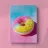Bright pink and yellow donut with sprinkles against a pastel blue background. Digital illustration with oil texture, bold colours and soft edges. Perfect for cheerful, modern wall decorations or creative spaces.