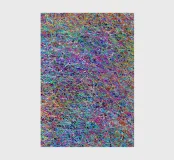 This abstract graphic design painting combines surreal doodles with dynamic flow lines and bold colours in red, yellow, blue, white, pink and green. Inspired by expressionism and action painting techniques, the work conveys movement and depth. Complex textures and branching patterns make it a fascinating piece of modern art.
