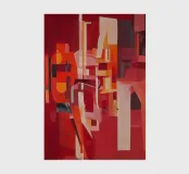 A bold exploration of structure through vivid abstraction. Dominated by layers of crimson, orange, and coral, this dynamic composition interlocks geometric forms with expressive brushwork, creating a rhythmic energy that feels architectural yet emotive. The interplay of sharp angles and soft gradients evokes movement, heat, and vitality — a striking centerpiece for any modern space.