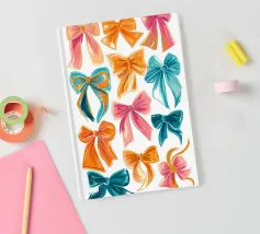 A charming coquette-inspired pattern featuring hand-drawn bows in pink, red, green, and gold tones on a soft blush background. This festive artwork blends vintage flair with playful elegance—perfect for Christmas decor or adding a sweet, feminine touch year-round. Ideal for dopamine decor lovers who adore cozy, nostalgic, and cheerful designs with a modern twist. Merry Christmas from showmemars