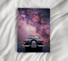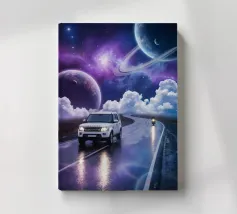 Take a thrilling ride through the cosmos with this bold and imaginative art print. A sleek modern car speeds through a swirling galaxy tunnel toward Saturn, creating a futuristic scene filled with energy, motion, and wonder. Bright cosmic colors, glowing stars, and dynamic movement make this design perfect for dreamers, sci-fi lovers, car enthusiasts, and anyone inspired by adventure. Ideal for bedrooms, game rooms, offices, or modern interiors, this artwork adds excitement, creativity, and a sense of limitless possibility.