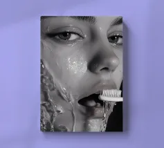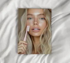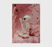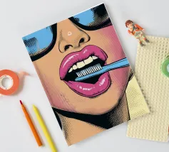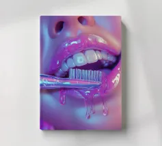 Blast off into a fun daily routine! This adorable art print features a friendly robot astronaut on a pink planet, ready for adventure with a giant toothbrush. Perfect for a nursery, kid's bedroom, or a playful pediatric dental office. Cute 3D art of a white robot astronaut on a pink planet holding a toothbrush, ideal for kids room or nursery wall decor.