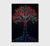 This mesmerizing artwork depicts a tree of life aglow with a vibrant, intricate network of lights, symbolizing the interconnectedness of all living things and the flow of energy throughout the universe. The roots delve into a luminous, otherworldly realm, while the branches reach for the cosmos, each branch and root pulsating with a unique, radiant color. This piece is a celebration of nature, technology, and the spiritual energy that binds us all. It's perfect for anyone who loves unique, colorful, and thought-provoking art. this art is designed with ai