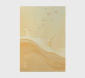 A fluid splash of creamy substance creates dynamic shapes on a warm background. Bubbles rise amidst soft colors, capturing a sense of movement and energy in the design.
