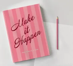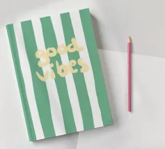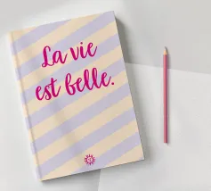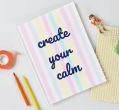 "Create Your Calm" centred on a vertically striped background in soft pastel colours. Simple clipart design without shadows, minimalist and clear - ideal for calm, balanced vibes with a modern look.