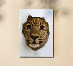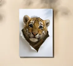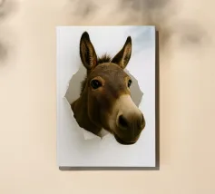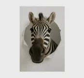 This striking artwork features a curious zebra peeking through a torn white paper surface, creating a bold and realistic 3D illusion. The detailed stripes, expressive eyes, and close-up perspective make it an instant attention-grabber. Perfect for animal lovers, safari-themed décor, or modern minimalist interiors, this unique design adds personality and charm to any room. Ideal for living spaces, offices, bedrooms, or creative studios, it brings a playful yet elegant touch to your wall art collection.