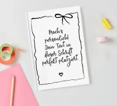 Personalised text – black and white – with frame, bow and heart. A little text, a whole lot of heart! Design your own personalised poster!