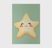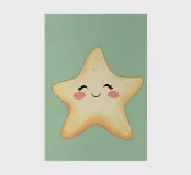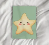 A cheerful star character with a smiling face and blush cheeks. Its soft yellow hues create a friendly and inviting appearance, perfect for children's themes or playful designs.