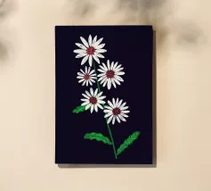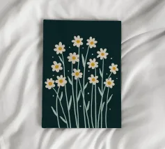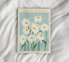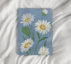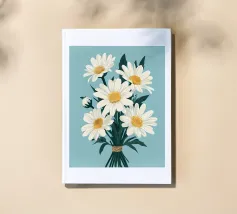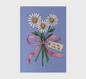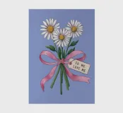 A sweet and romantic illustration of a bouquet of white daisies tied with a pink ribbon. A small tag that reads 'to my love' is attached, making this a perfect depiction of a heartfelt, romantic gesture.