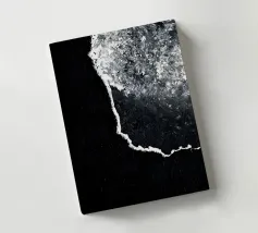 A deep black surface exhibits a slightly textured appearance with variations in shade and depth, creating a captivating backdrop ideal for design purposes, art projects, and photography.