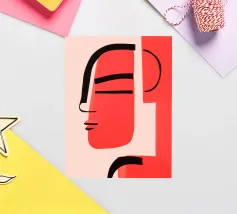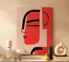 Graphically coherent and powerful: this minimalist portrait breaks down a human profile into planes and lines - a visual meditation on identity and perspective. Vibrant coral red contrasts with soft pink and black contours. The style combines cubist tradition with contemporary graphic reduction, reminiscent of Picasso and Léger. The flat colour scheme and clear lines create an iconic conciseness. This successful work will appeal to anyone who appreciates conceptual depth, graphic elegance and psychological dimensions. Modern and enigmatic on the wall.