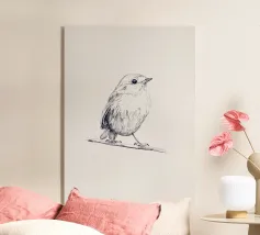 Embrace the subtle charm of nature with our "Delicate Bird Sketch Art" poster. This exquisite artwork features a finely detailed illustration of a small bird perched on a branch, rendered in a classic pen-and-ink style with intricate lines and subtle shading, all against a clean, light background. The minimalist yet expressive design evokes a timeless sense of natural beauty and serenity, perfect for adding a sophisticated and tranquil touch to any modern, Scandinavian, or study interior. Our digital art is meticulously crafted at 7000x5000 pixels resolution with 300 dpi, ensuring exceptional