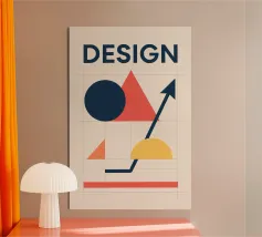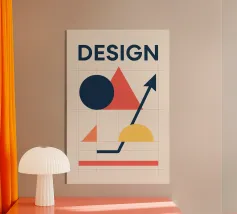 A striking graphic poster for design enthusiasts. Combining simple geometric shapes, strong typography and a retro palette, this poster embodies the essence of modern graphic design. Perfect for livening up an office, studio or design school. Minimalist yet expressive, it visually conveys the creative evolution and spirit of the composition.