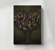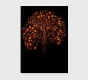 This striking digital art piece, "Digital Roots," presents a powerful fusion of nature and technology. It depicts a majestic tree, not of wood and leaves, but of glowing, intricate circuitry. Each branch and root is a pulsating line of light, connecting to "fruit" in the form of illuminated circuit nodes, some marked with numbers. The warm, fiery orange and yellow tones stand out against the stark black background, creating a mesmerizing and sophisticated visual. This work is perfect for anyone who appreciates the beauty in code, the elegance of engineering, or the profound connection between