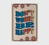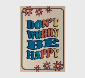 Spread positivity and good vibes with this iconic "Don't Worry Be Happy" art print. The phrase is rendered in playful, chunky typography, with "Don't Worry" in vibrant blue and "Be Happy" in cheerful yellow, all set against a clean, light background. This design captures the essence of optimistic retro pop art, inspired by the beloved song and a timeless message of cheerfulness. It's perfect for adding a touch of bright, carefree energy to any space. This high-quality digital art is presented in a stunning 7000x5000 pixels resolution at 300 dpi, ensuring crisp details and vibrant colors for a
