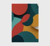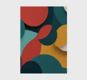 This artwork showcases an array of vibrant, overlapping circular forms in various colors, creating a lively and engaging abstract design that captivates the eye.