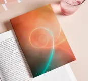 Swirling curves in soft gradients of orange and teal create an abstract design. This background features a calming spiral effect blending colors seamlessly.