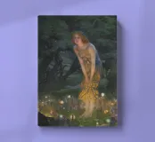 Edward Robert Hughes’ Midsummer Eve (1908) is a luminous Pre-Raphaelite masterpiece filled with enchantment and dreamlike wonder. The painting depicts a young woman in a soft, glowing gown surrounded by a ring of tiny fairies who illuminate the twilight scene with magical light. Hughes, celebrated for his mastery of color and atmosphere, captures the ethereal beauty of folklore and the delicate boundary between reality and fantasy. This work remains one of the most beloved examples of late Pre-Raphaelite and Symbolist art..