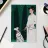 An elegant woman in a classic white dress and black hat walks her beautiful dalmatian dog through a dark forest, creating a sophisticated and timeless scene.