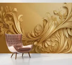 This decorative design features a rich golden background adorned with swirling floral patterns, ideal for enhancing computer desktops, slides, or any creative project needing elegance.