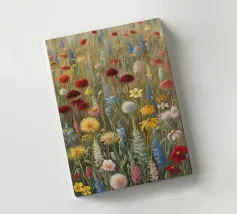 Step into a world of vibrant color and serene light with this captivating piece. This painting depicts a magical forest path winding its way towards a brilliant, glowing clearing. Towering, ancient trees with deep blue and green foliage create a natural archway, guiding the viewer's eye. The sun-dappled trail is lined with patches of delicate wildflowers, adding splashes of pink and purple to the lush, green undergrowth. The ethereal glow at the end of the path draws you deeper into this enchanted scene, promising a sense of hope, wonder, and tranquility. This artwork is perfect for adding a t