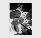 A close-up of a group of leaves silhouetted against the sky.