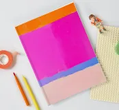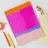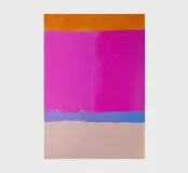 A painting with pink, orange and blue stripes on a white background in the style of the hard-edge painter and colour field expressionist
