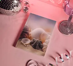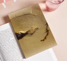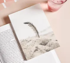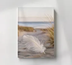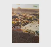 A light feather, just escaped from a distracted gull, waddles proudly across the damp sand. Beside it, a spiralling seashell seems to be listening as it recounts its adventures of wind and altitude. The water has receded like a star backstage, leaving this strange encounter at low tide. Who knows, maybe they'll write beach poems together!