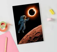 This dynamic space artwork features an astronaut drifting weightlessly above Earth, surrounded by the vast beauty of the cosmos. The swirling clouds below, paired with Mars and the Moon glowing in the distance, create a powerful sense of motion, exploration, and wonder. The vivid details of the suit, the dramatic lighting, and the deep star-filled sky make this design perfect for lovers of astronomy, sci-fi art, futuristic themes, and adventure-inspired wall décor. A striking piece that celebrates curiosity and the limitless universe.
