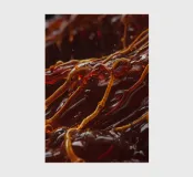 A mesmerizing display of fluid dynamics where orange and red liquid layers swirl and intertwine across a textured surface, creating an intricate visual.